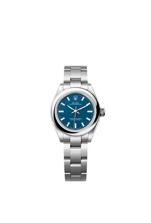 Oyster Perpetual 28 with med blue dial and Oyster bracelet .