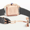 A timeless expression of elegance and power, the Santos de Cartier WGSA0019 watch features a large 39.8mm case crafted in luxurious 18ct rose gold, paired with a refined silvered opaline dial and bold Roman numerals. The signature Cartier sword-shaped hands, made of blued steel, add a striking contrast.